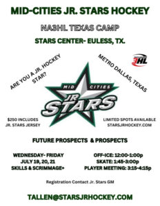 Click the link to register for our Texas Prospect Camp: https://mid-cities-junior-stars.sportngin.com/register/form/419859562